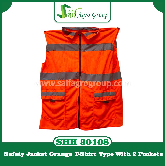 Safety Jacket Orange T-Shirt Type With 2 Pockets